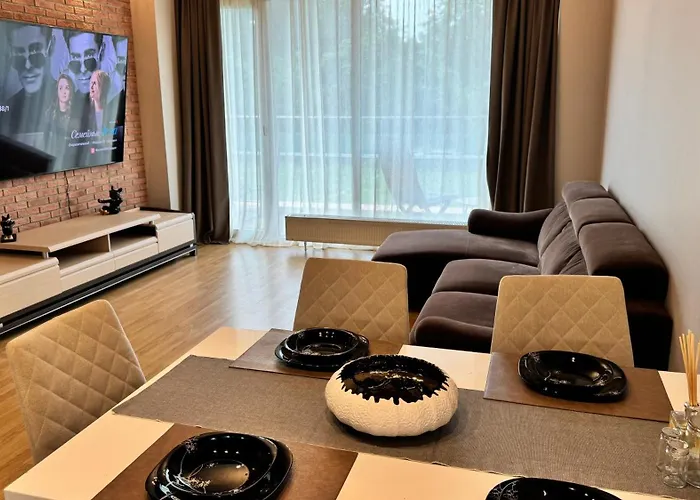 There is an equipped kitchenette with an oven and a dishwasher at the apartment. The nearest airport is Riga International, 5 km from the apartment, and Anninmuizas vidusskola bus station is 200 metres away. Guests will find a fitness suite at their disposal, enabling them to stay in shape.
